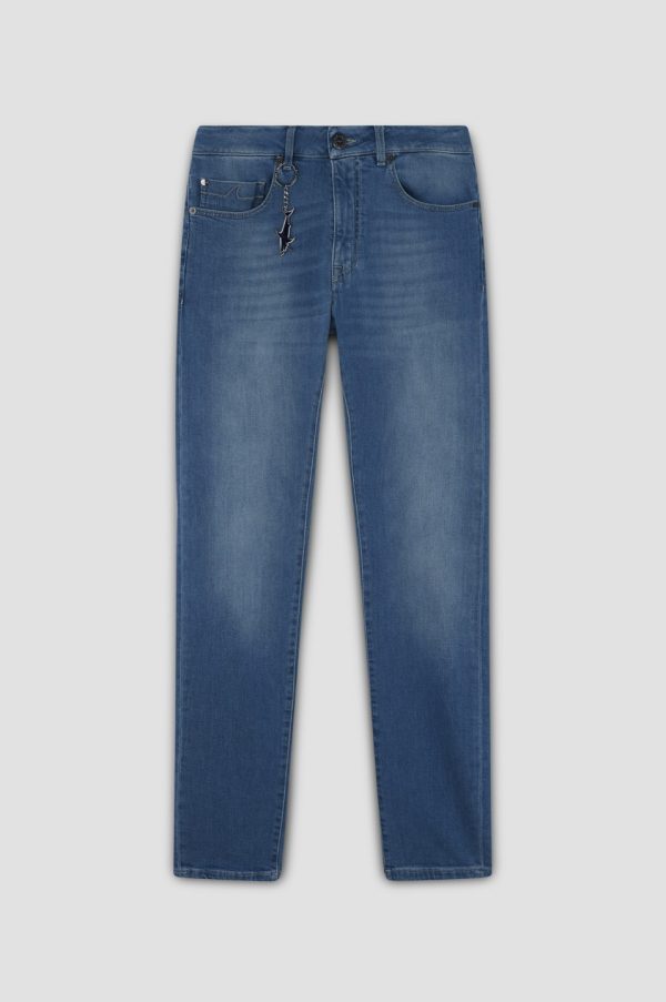Composition: Outside: 98% cotton 2% spandex – Containing non-textile parts of animal origin