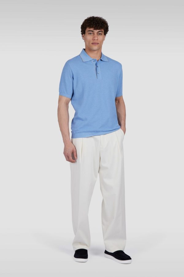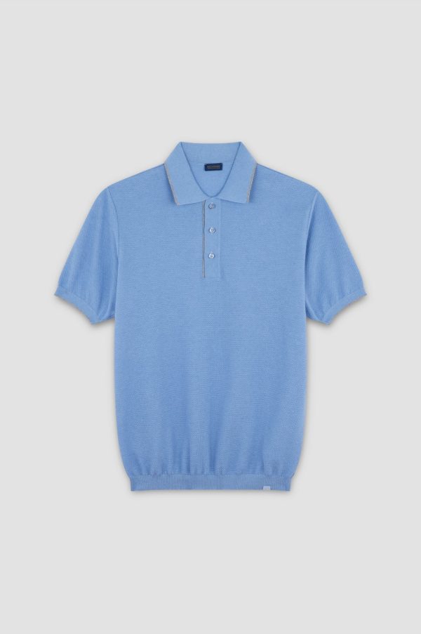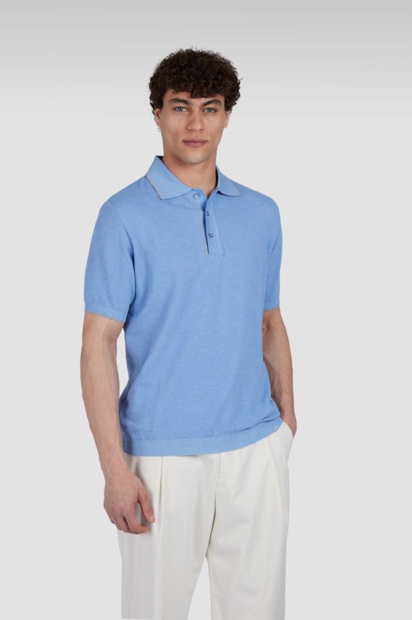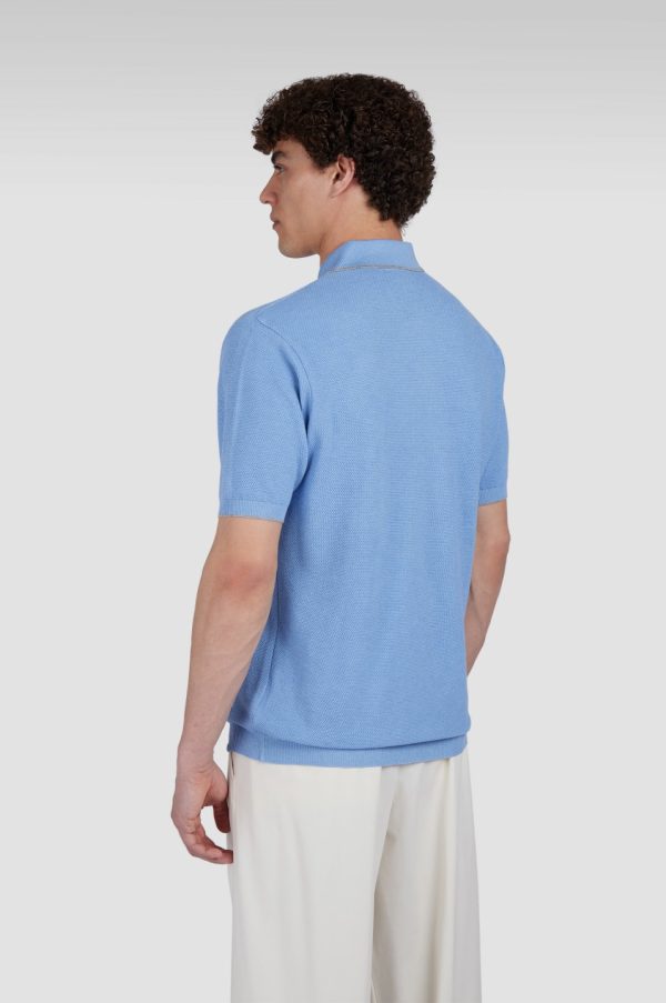 Crew Neck Sweater In Cotton And Cashmere With Leather Trims Blue | Men Paul & Shark Knitwear