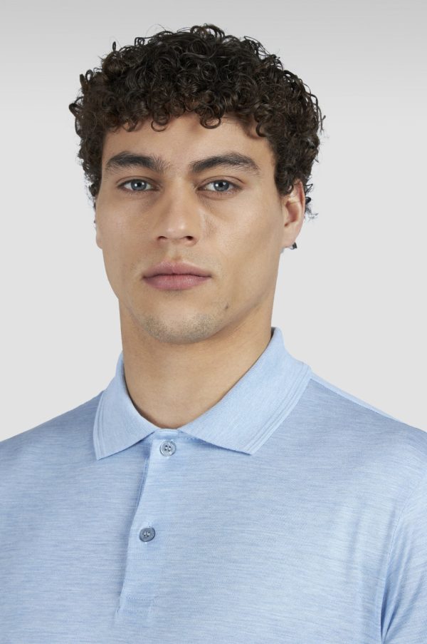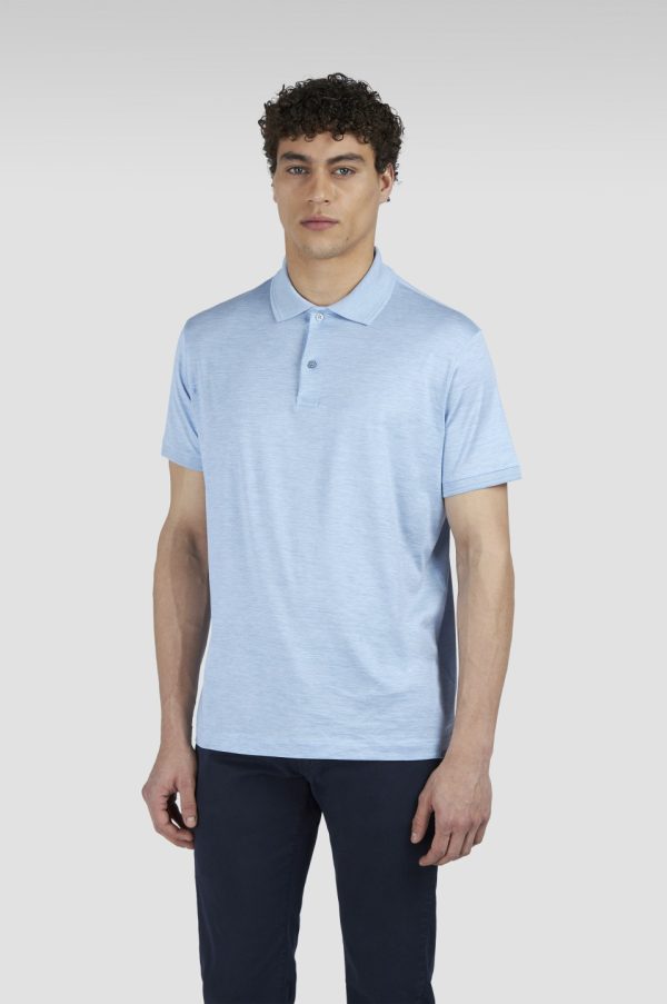 Cotton And Silk Polo Blue Melange | Men Paul & Shark Polo Shirts