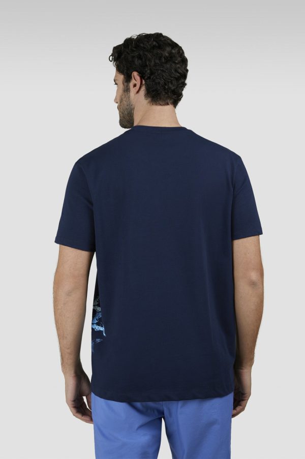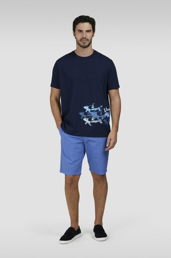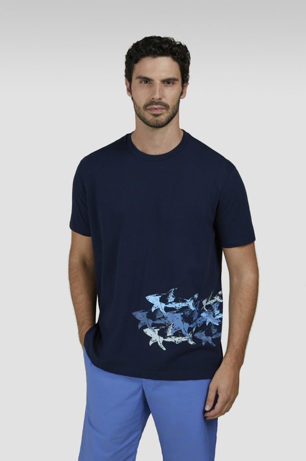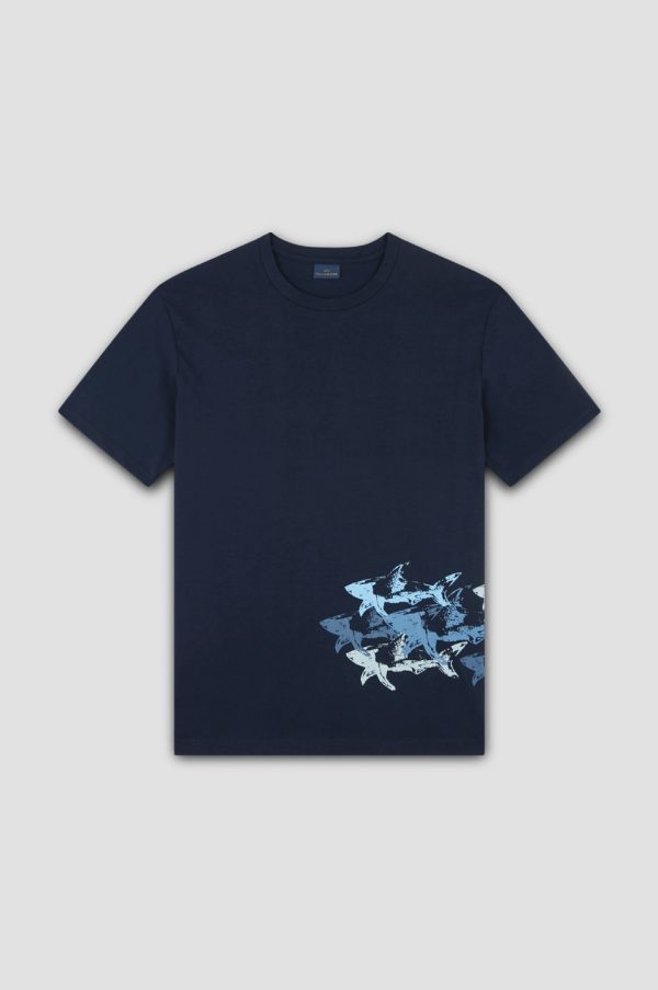 Cotton Jersey T-shirt With Distressed Sharks Print Blue | Men Paul & Shark T-Shirts