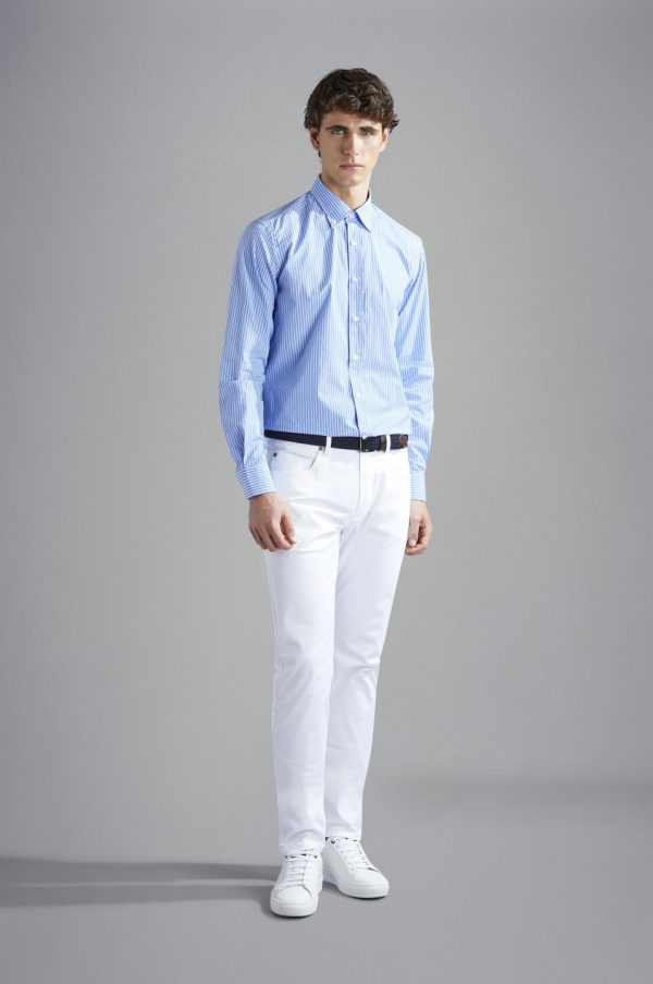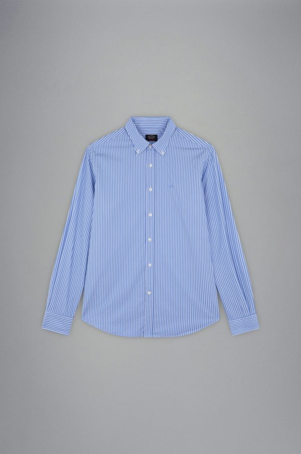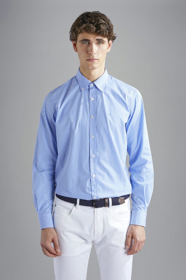 Cotton Poplin Shirt Rows Light Blue White | Men Paul & Shark Shirts
