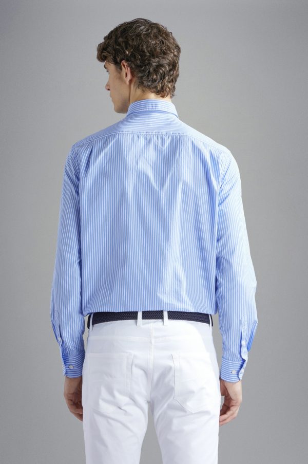 Cotton Poplin Shirt Rows Light Blue White | Men Paul & Shark Shirts