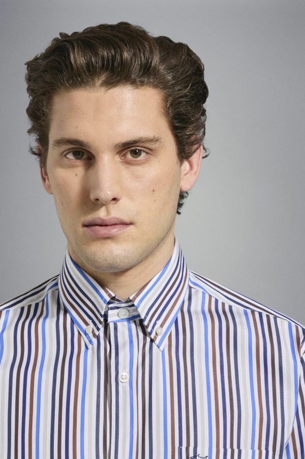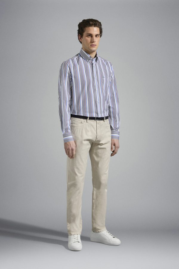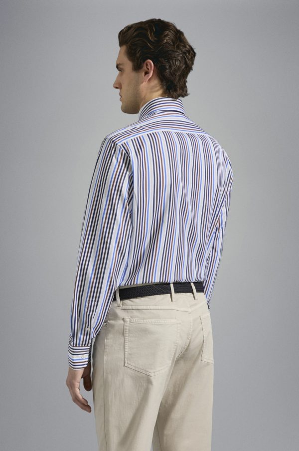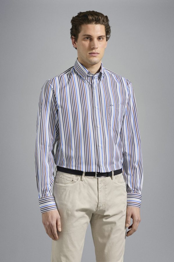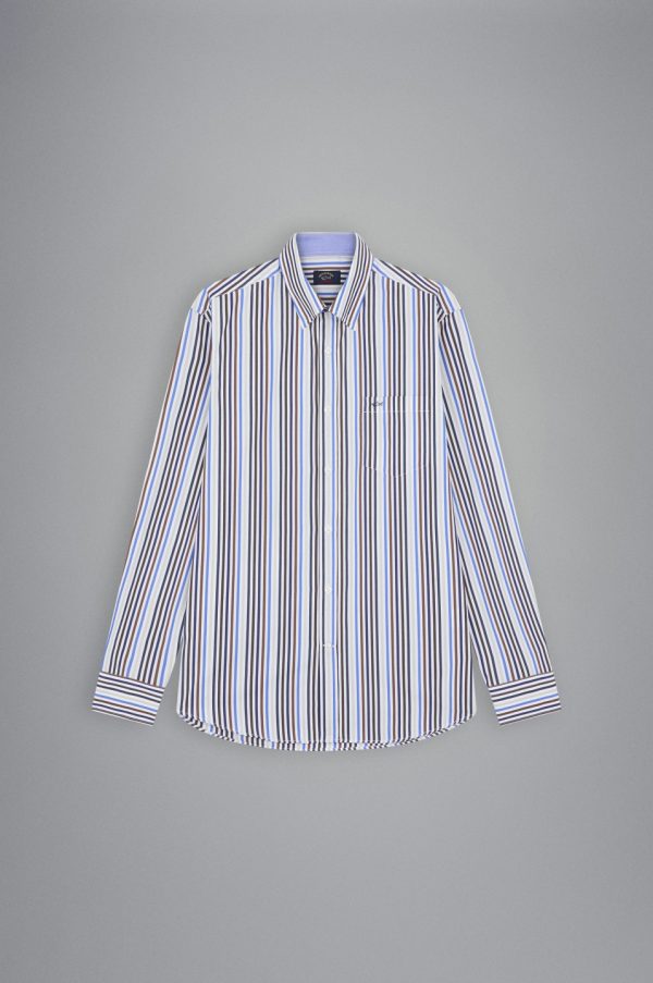 Cotton Poplin Shirt Rows White Blue Brown Cobalt | Men Paul & Shark Shirts