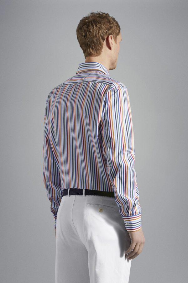 Cotton Poplin Shirt Rows White Blue Brown Yellow | Men Paul & Shark Shirts