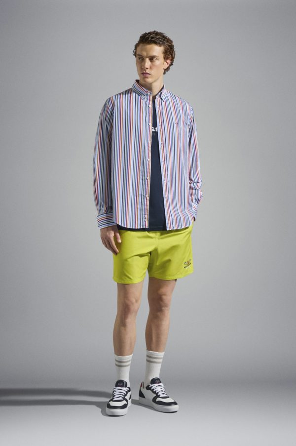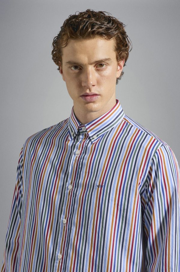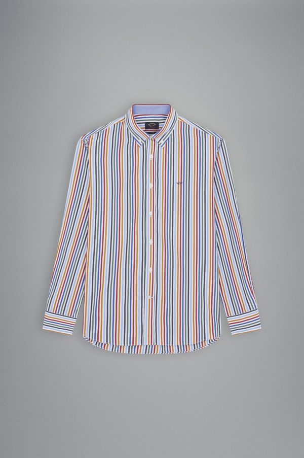 Cotton Poplin Shirt Rows White Blue Brown Yellow | Men Paul & Shark Shirts