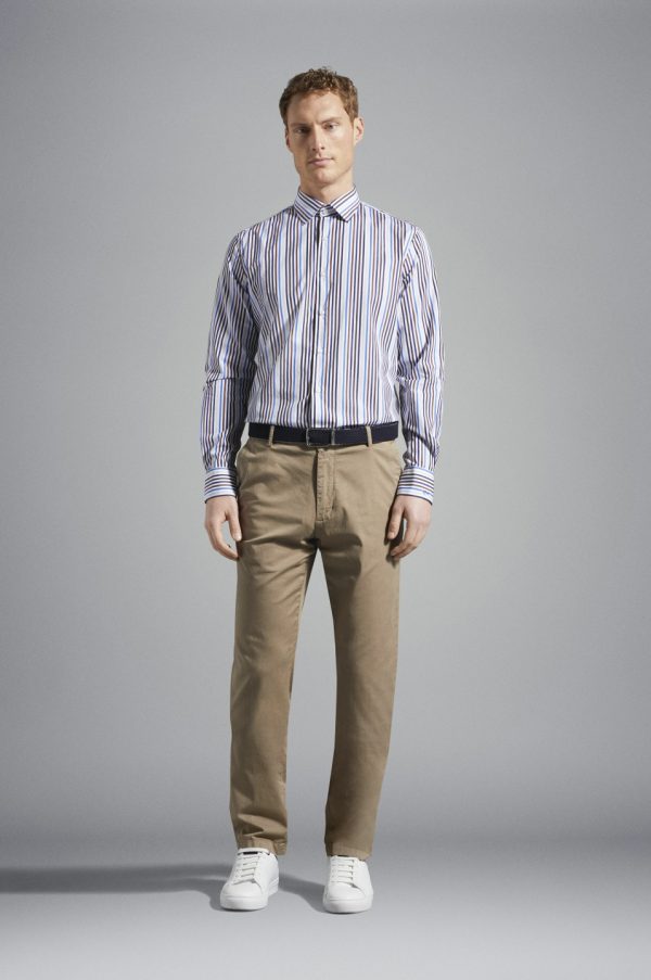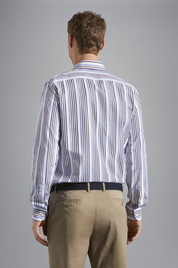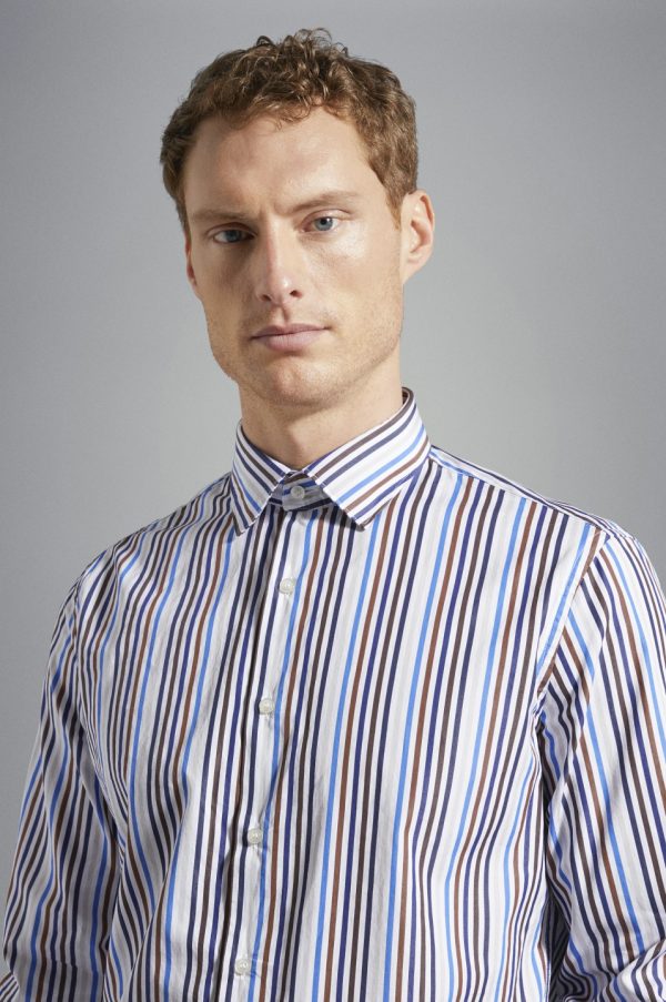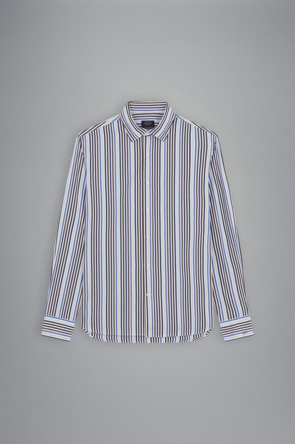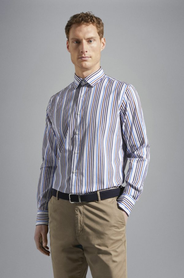 Cotton Poplin Shirt Rows White Blue Brown Yellow | Men Paul & Shark Shirts