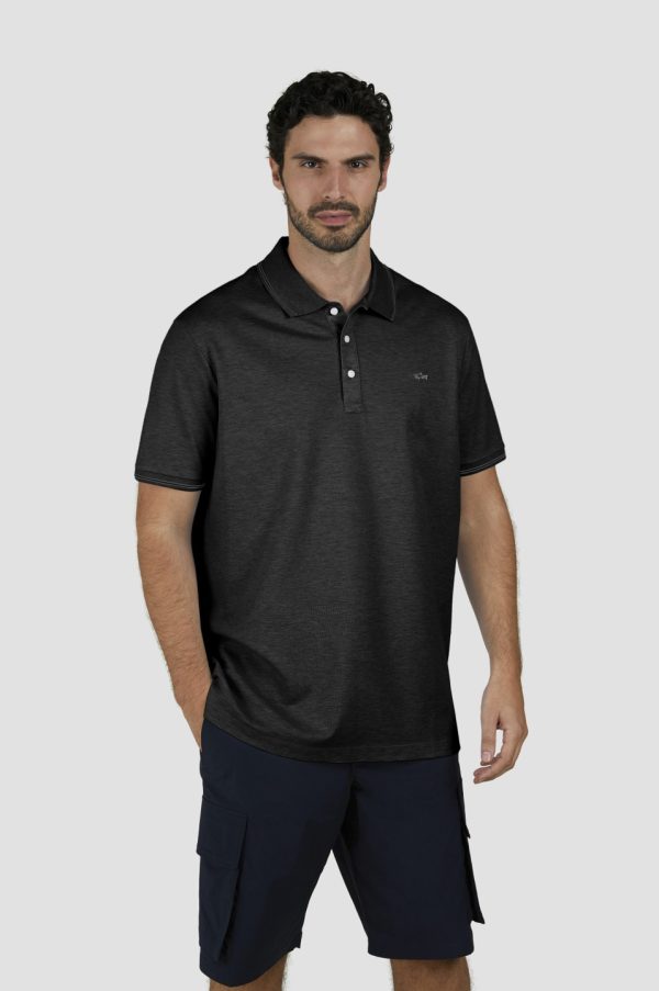 Double Piqué Cotton Polo Black | Men Paul & Shark Polo Shirts