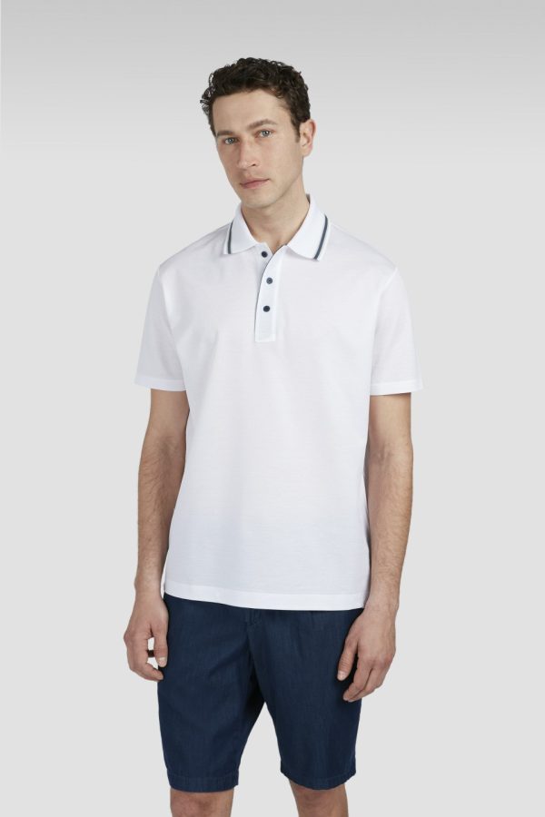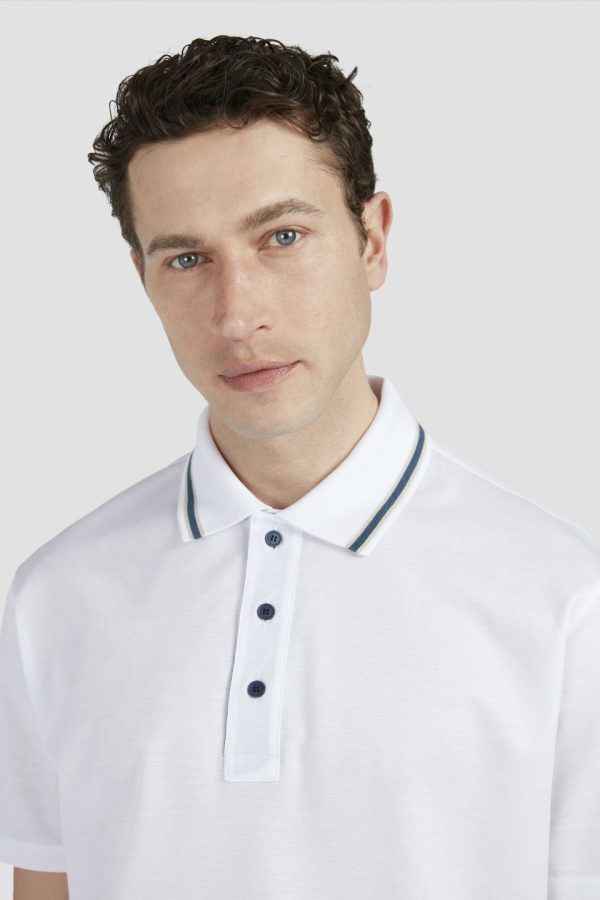 Double Piqué Cotton Polo With Striped Details White | Men Paul & Shark Polo Shirts