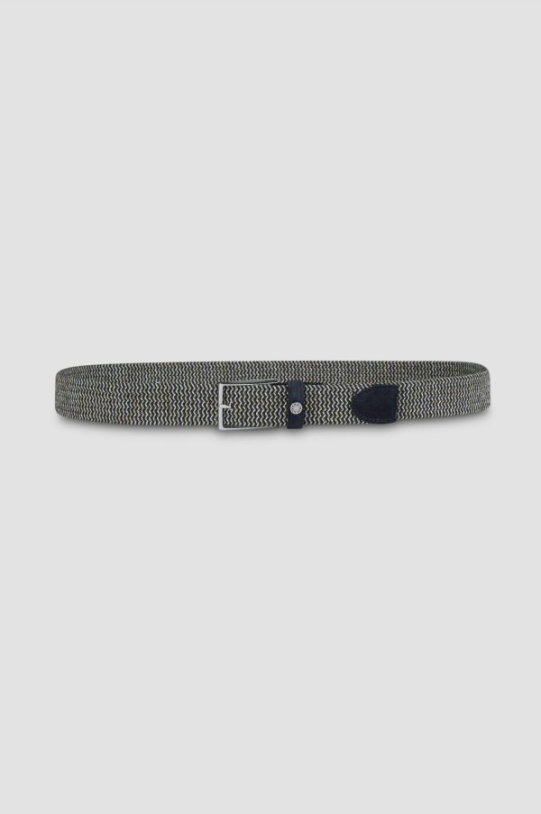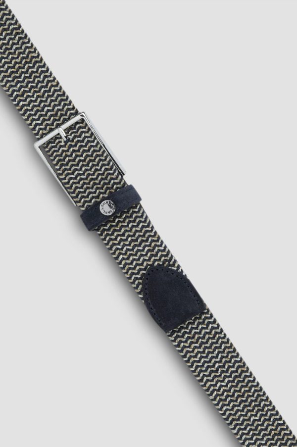 Elastic Belt With Micro-weave And Leather Trims Blue Beige | Men Paul & Shark Belts