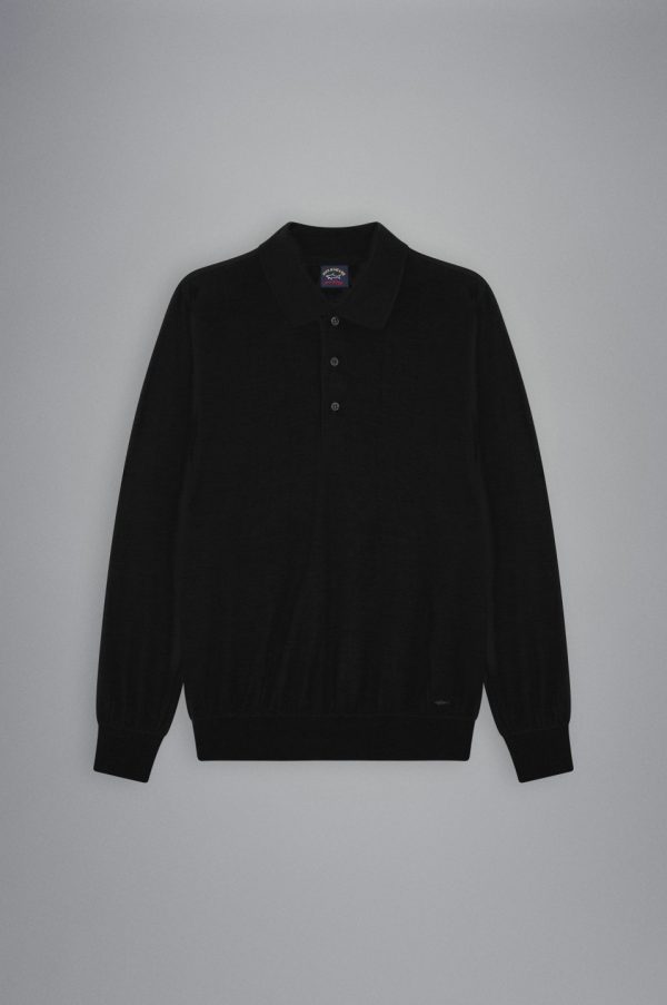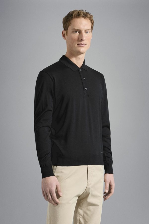 Extra Fine Winter-Summer Merino Wool Polo Black | Men Paul & Shark Knitwear