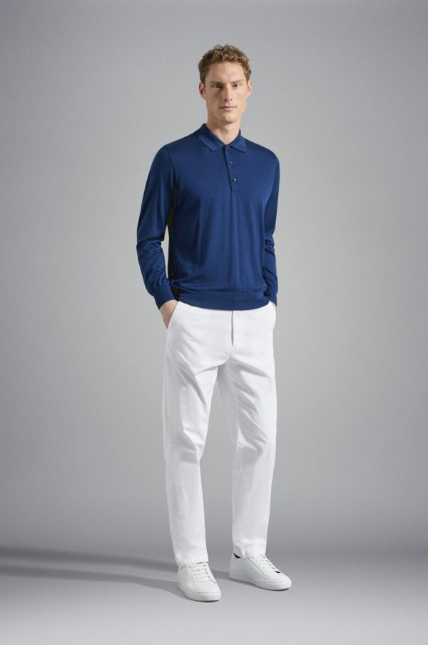 Extra Fine Winter-Summer Merino Wool Polo Indigo Blue | Men Paul & Shark Knitwear