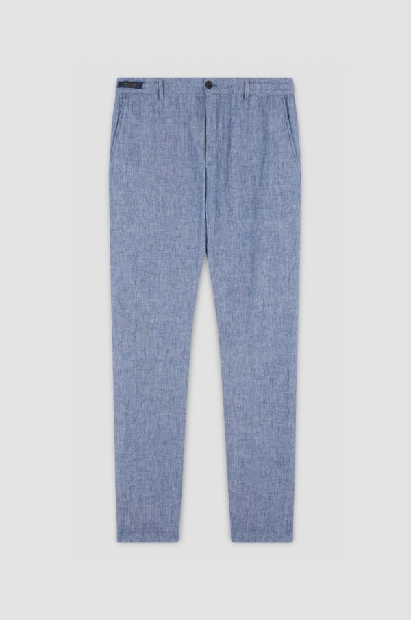 Linen Chino Pants With Pleats Blue | Men Paul & Shark Jeans And Trousers