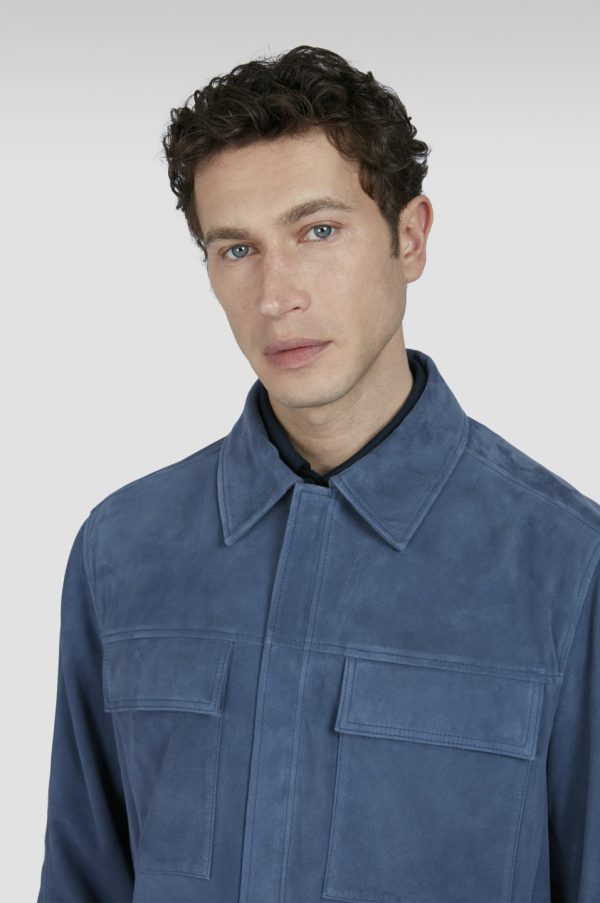 MEN’S Aqualeather Suede Shacket Regular Fit | Paul & Shark Vintage Indigo | Men Paul & Shark Outerwear