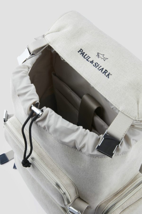 Composition: Outside: 85% cotton 10% polyester 3% nylon 2% other fibers – Inserts: bovine real leather – Lining: 100% polyester – Containing non-textile parts of animal origin