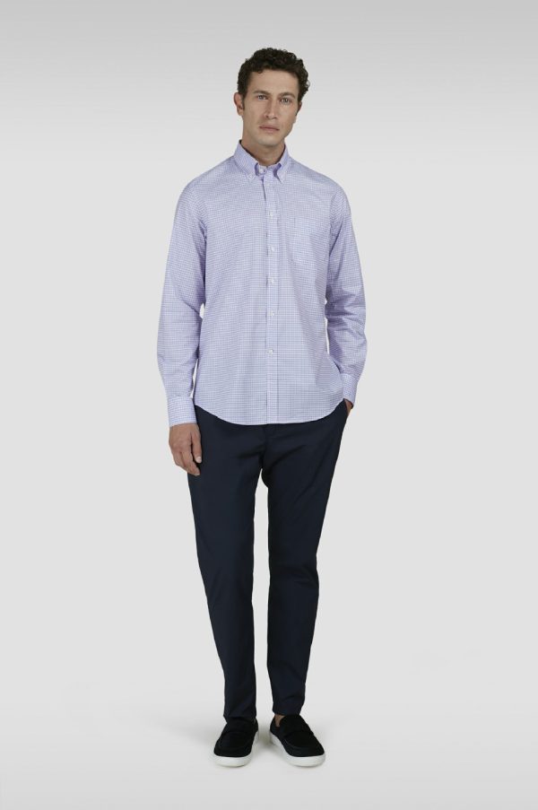 MEN’S Cotton Muslin Shirt With Long Sleeves J-Fit | Paul & Shark Checks White Light Blue Pink | Men Paul & Shark Shirts