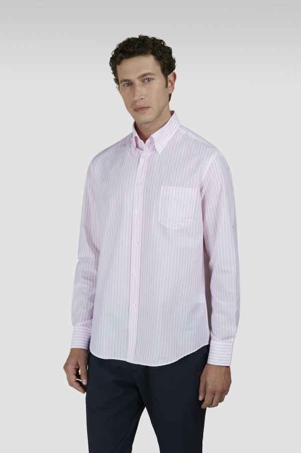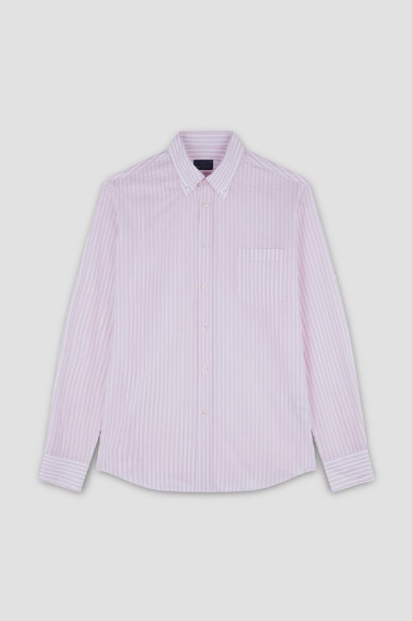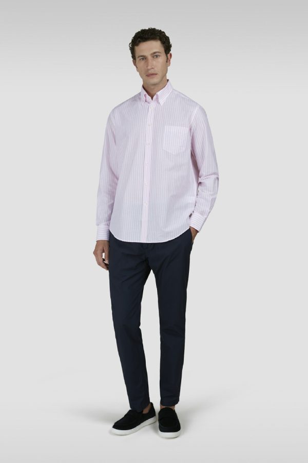 MEN’S Cotton Muslin Shirt With Long Sleeves J-Fit | Paul & Shark Rows White Pink | Men Paul & Shark Shirts