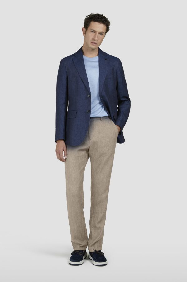 Chino Pants In Linen And Cotton Blue | Men Paul & Shark Jeans And Trousers