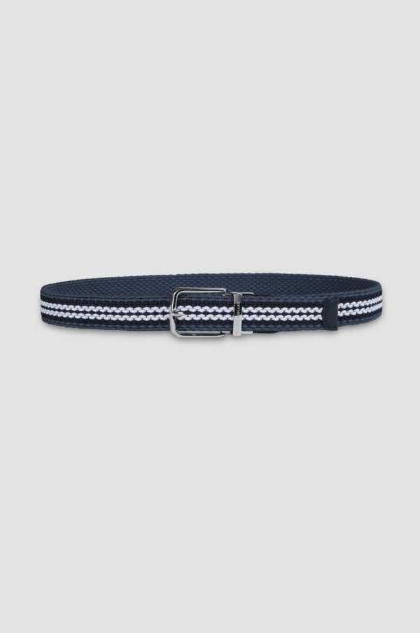 Striped Elastic Belt With Leather Trims Beige Off White Air Force Blue | Men Paul & Shark Belts