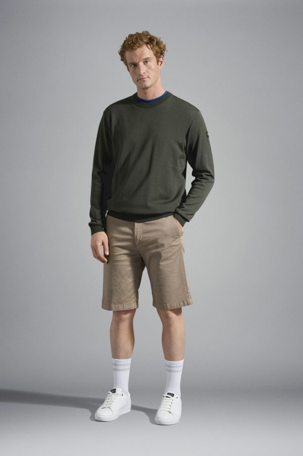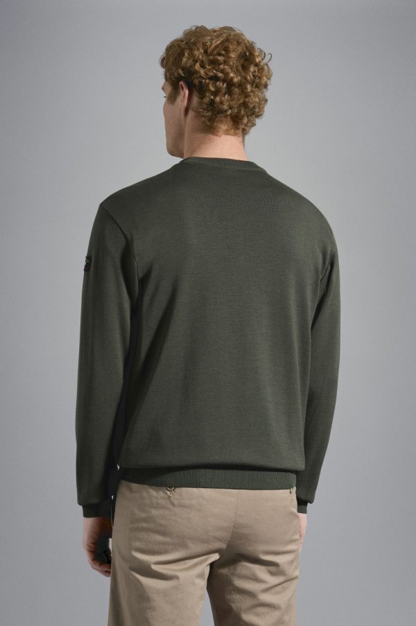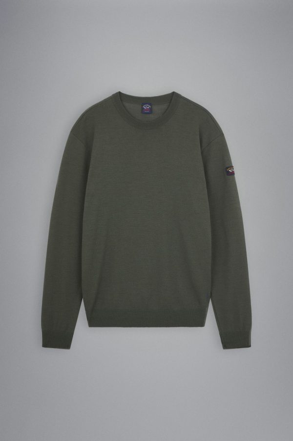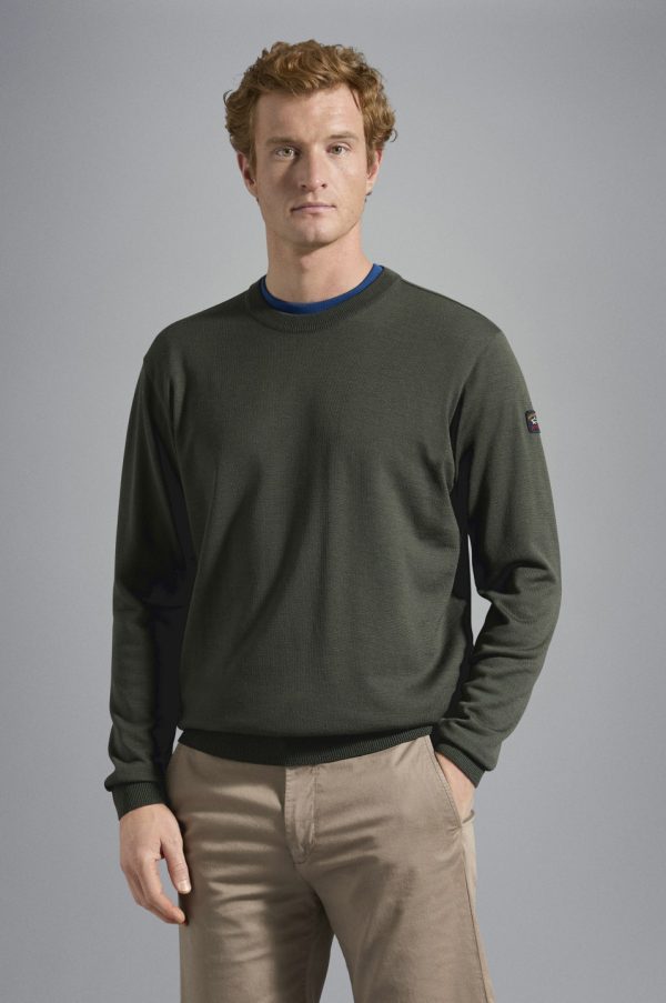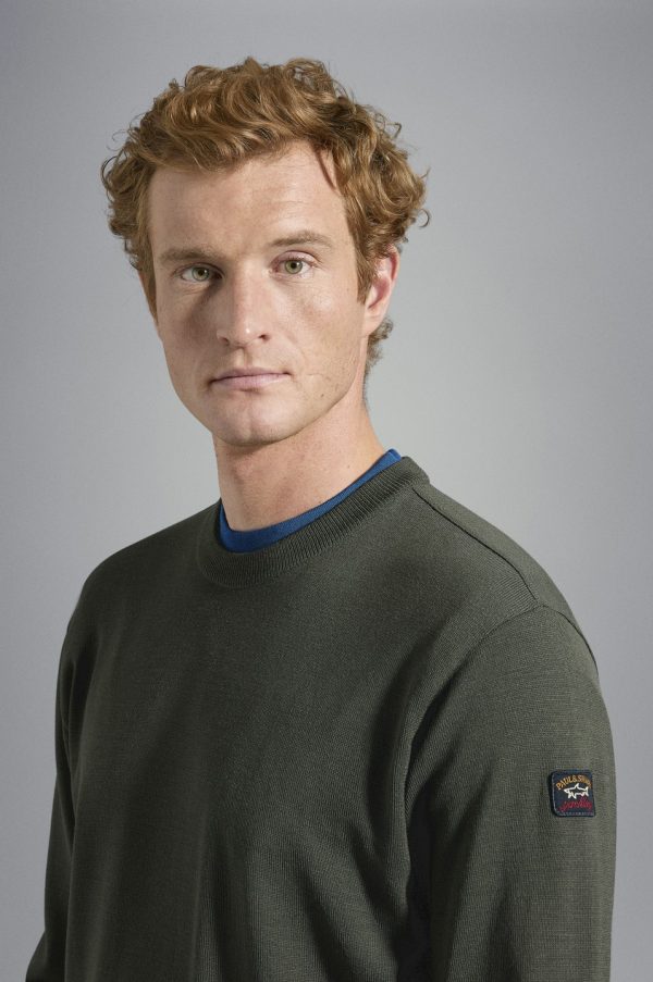 Merino Wool Crew Neck With Iconic Badge Forest Night | Men Paul & Shark Knitwear