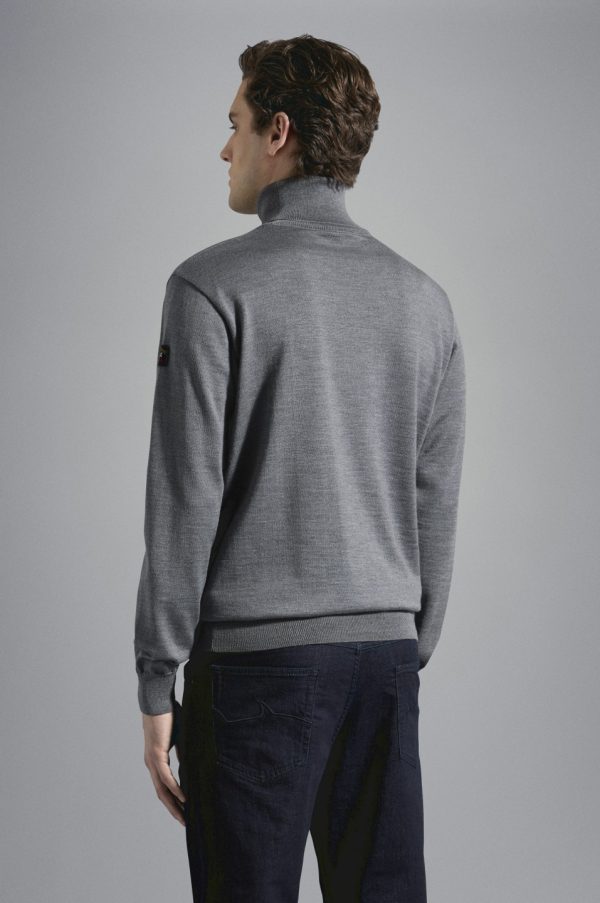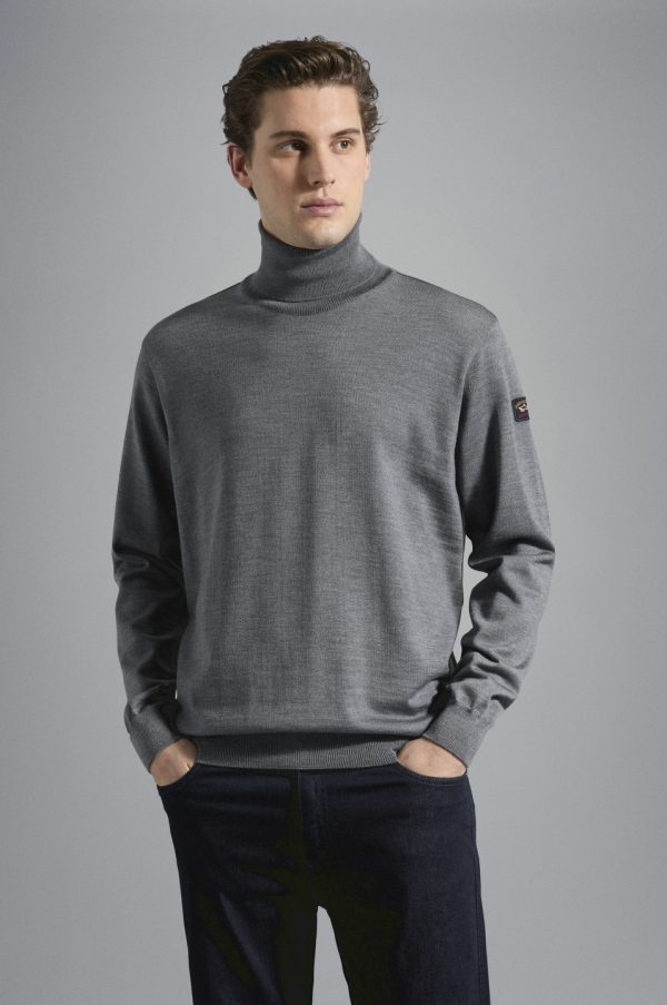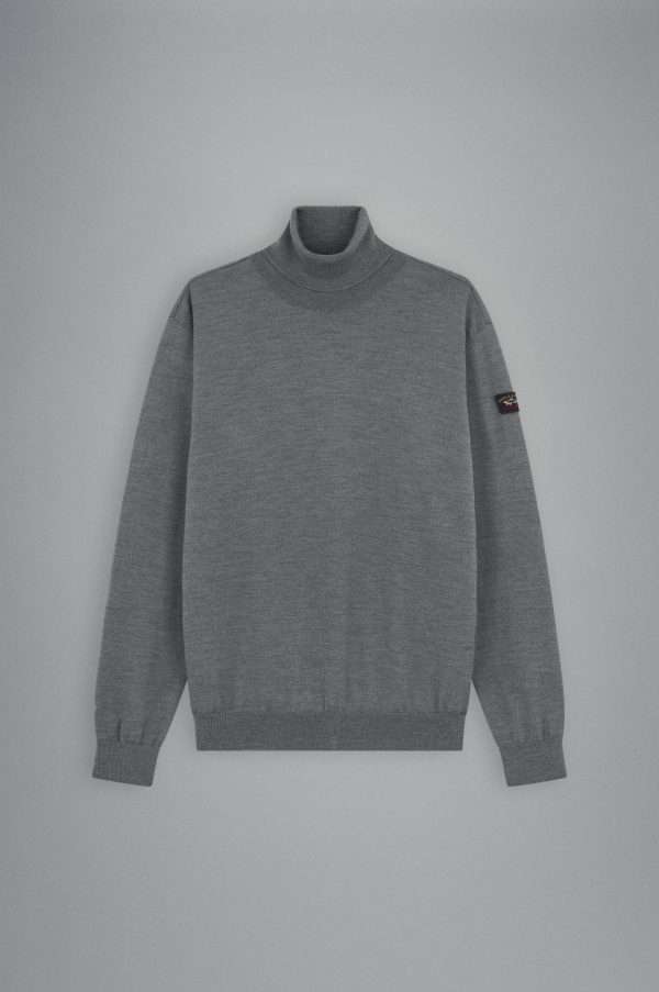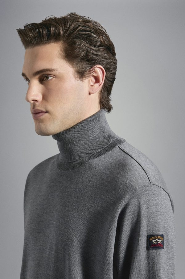 Merino Wool Turtleneck With Iconic Badge Dark Grey | Men Paul & Shark Knitwear