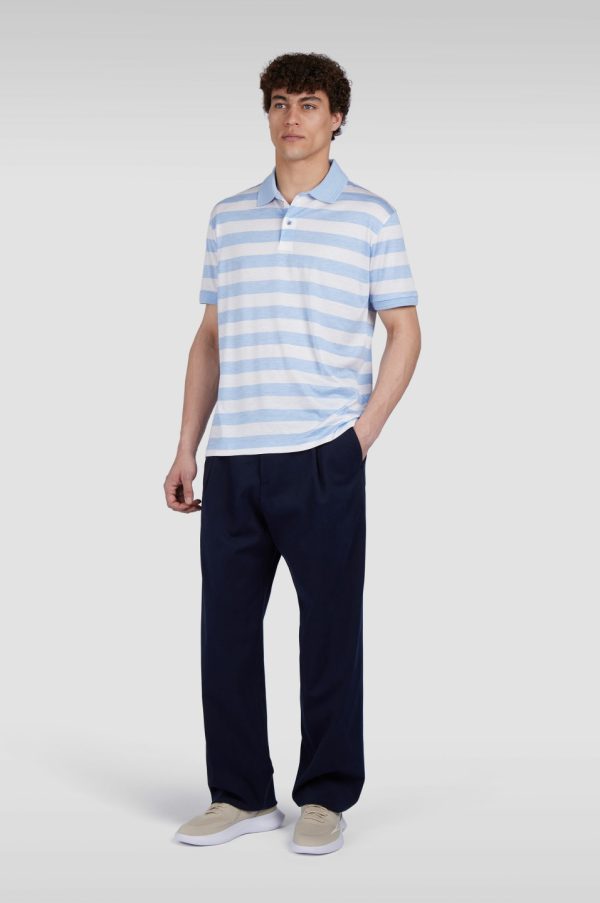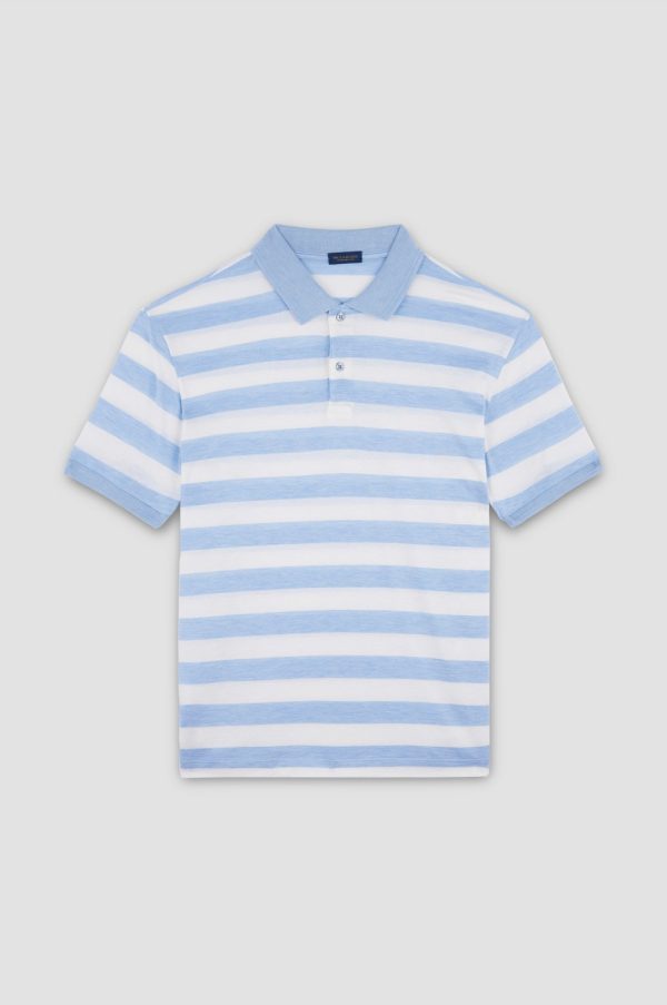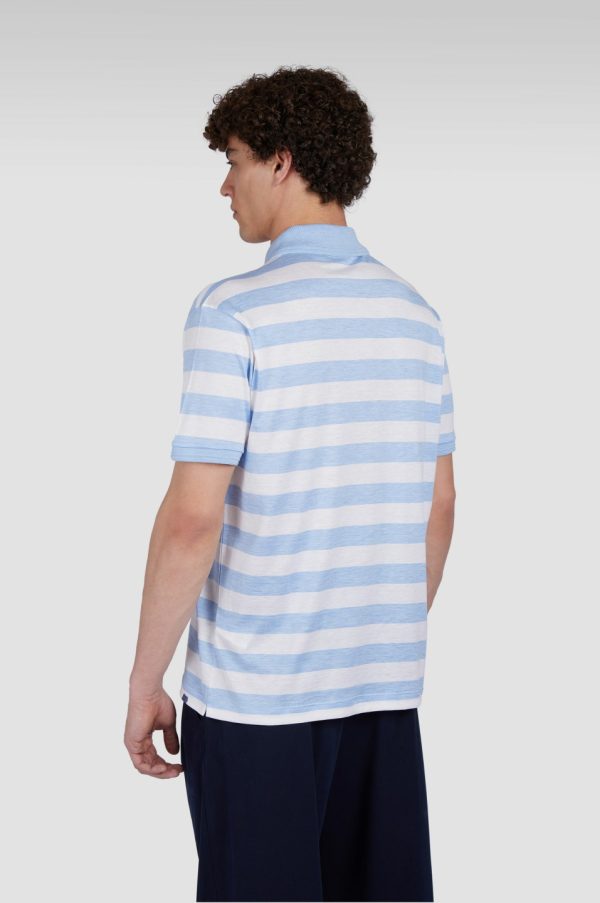 Polo In Cotton And Silk With Striped Pattern Bright White-cashmere Blue | Men Paul & Shark Polo Shirts