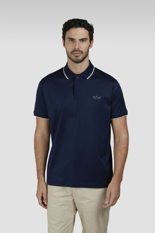 Perlé Cotton Polo Shirt Bright White-feather Gray Cerulean | Men Paul & Shark Polo Shirts