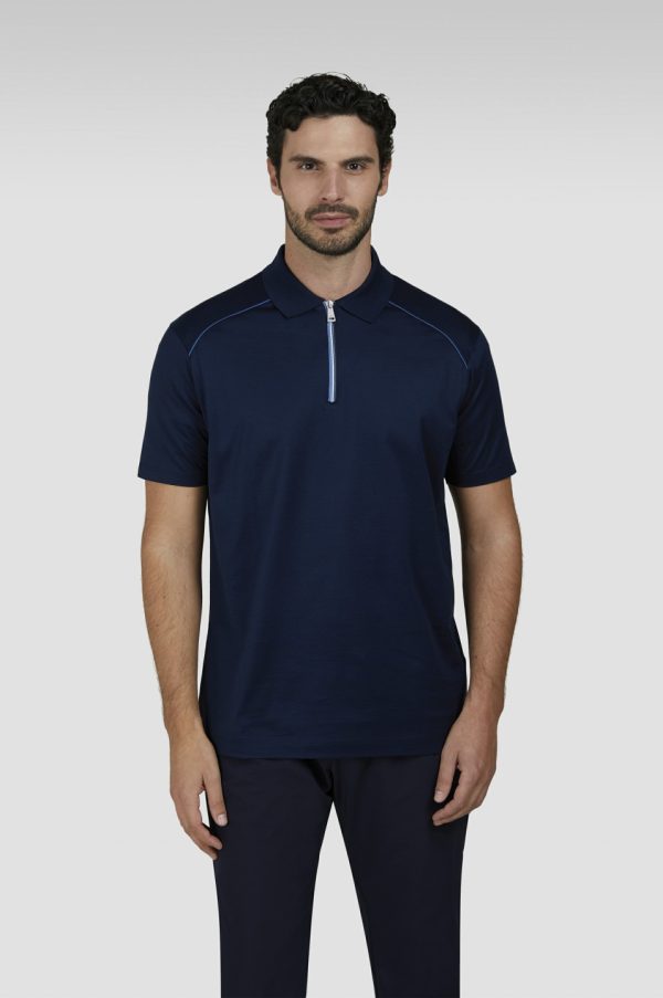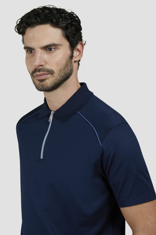 Polo Shirt In Pearl Cotton With Bicolor Zip Blue | Men Paul & Shark Polo Shirts