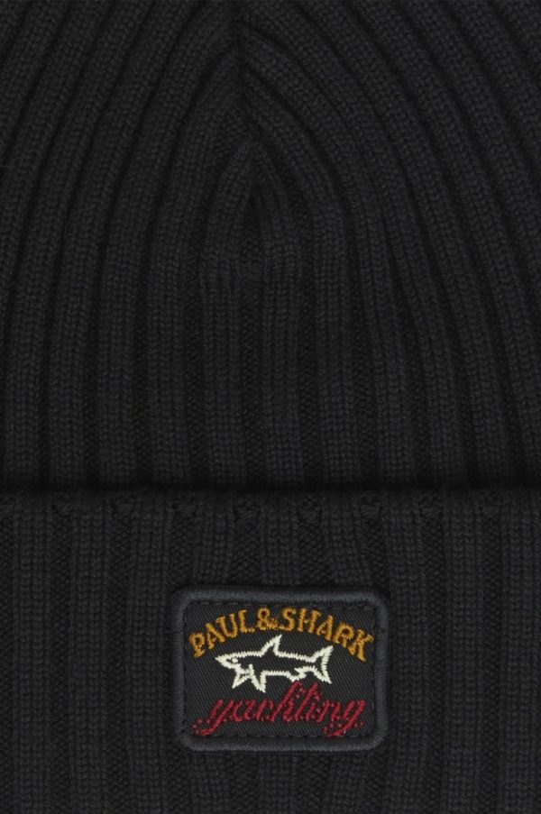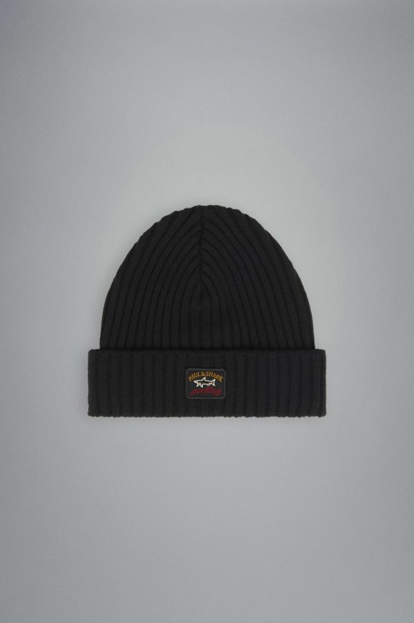 Ribbed Wool Beanie With Iconic Badge Black | Men Paul & Shark Accessories