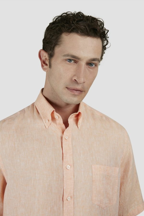 Short-sleeved Linen Shirt Orange | Men Paul & Shark Shirts