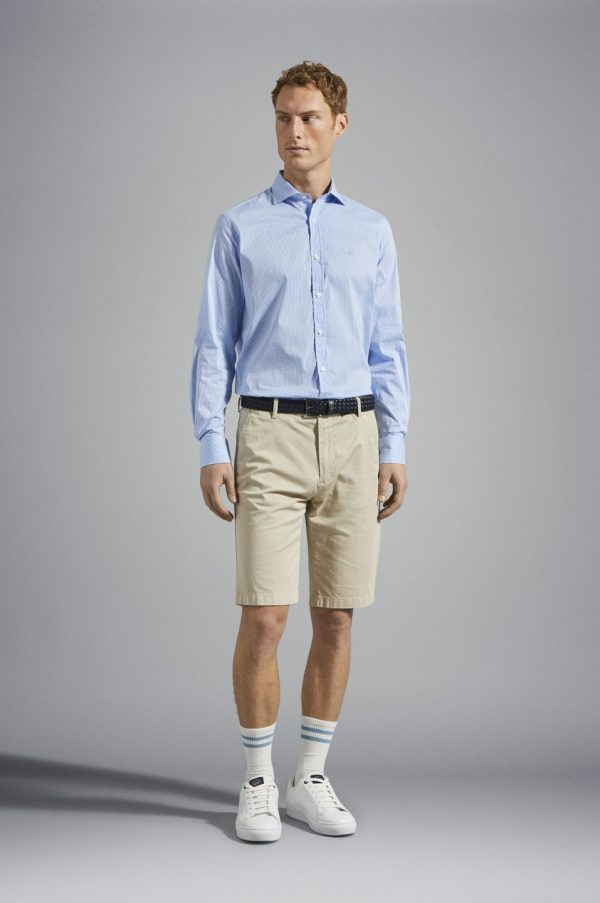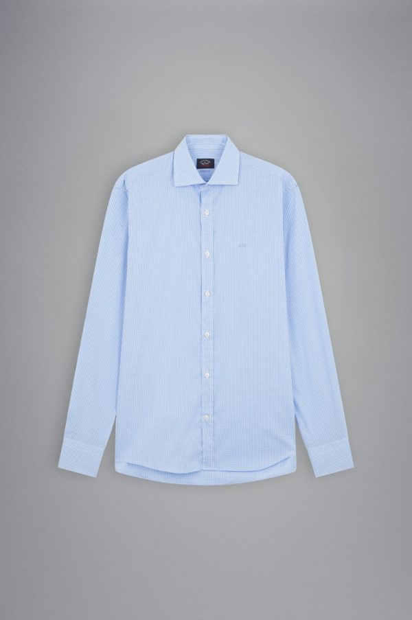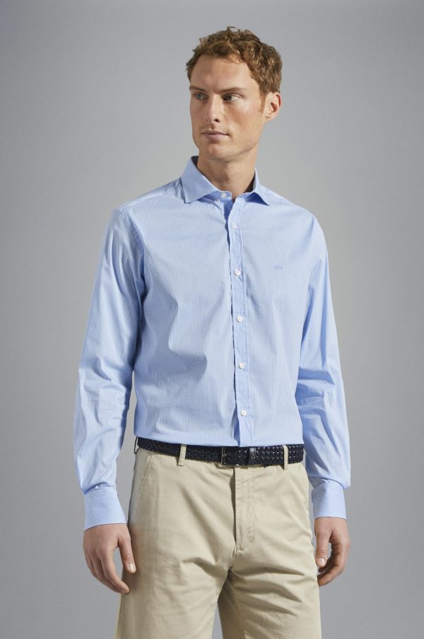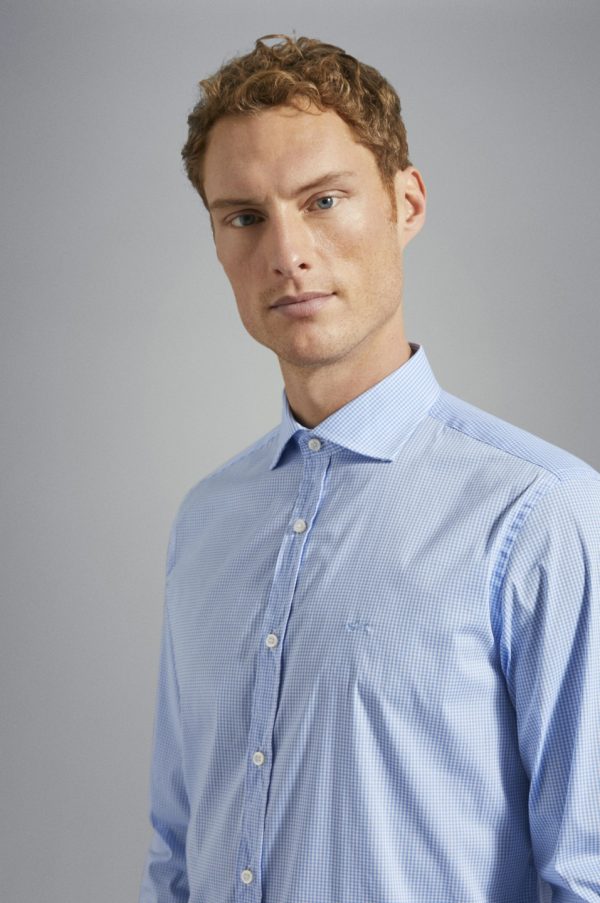 Stretch Cotton Shirt Square White White Light Blue | Men Paul & Shark Shirts