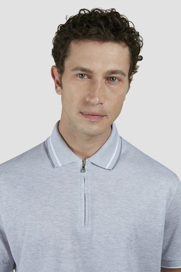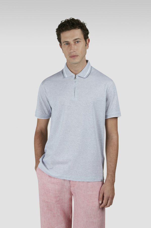 Two Tone Cotton Piqué Polo Bright White Vapor Blue | Men Paul & Shark Polo Shirts