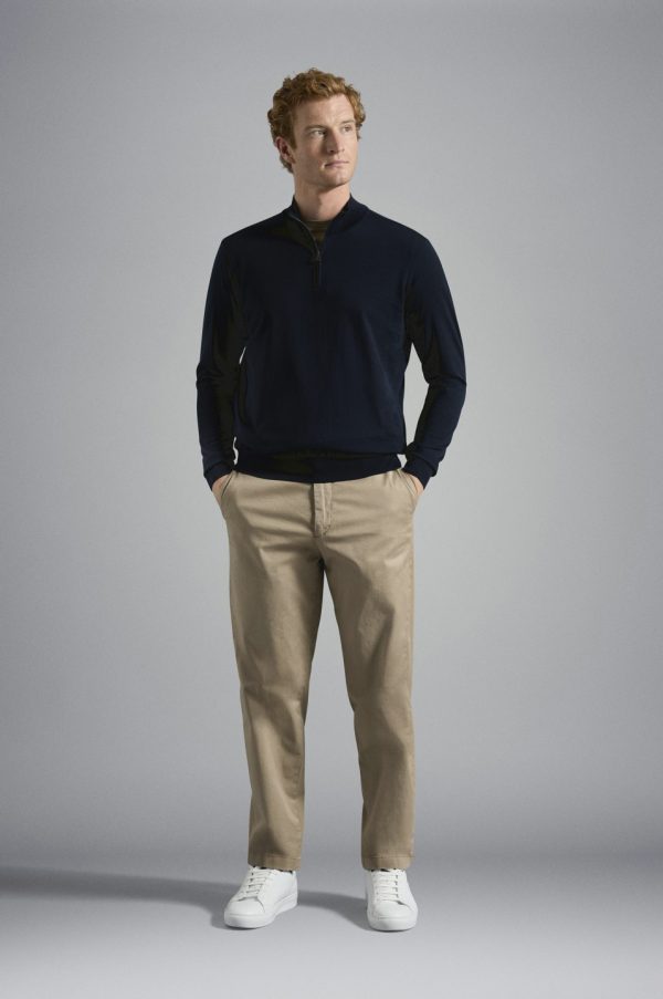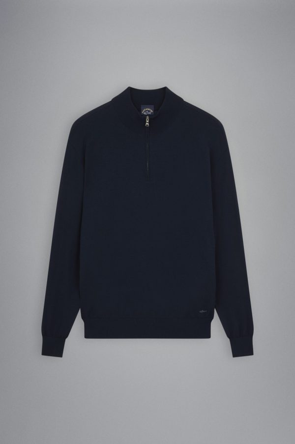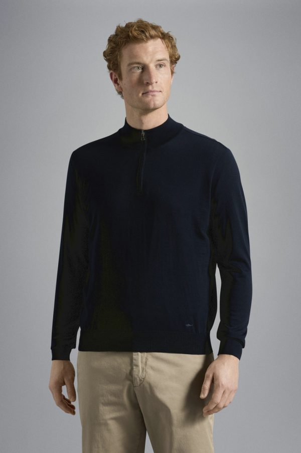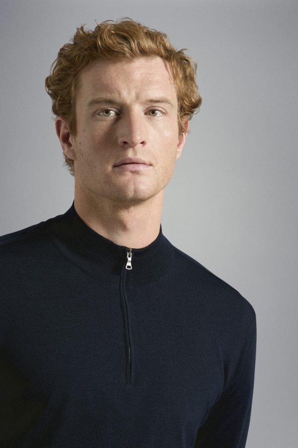 Winter Summer Merino Wool Extra-fine Half Zip Sweater Blue | Men Paul & Shark Knitwear
