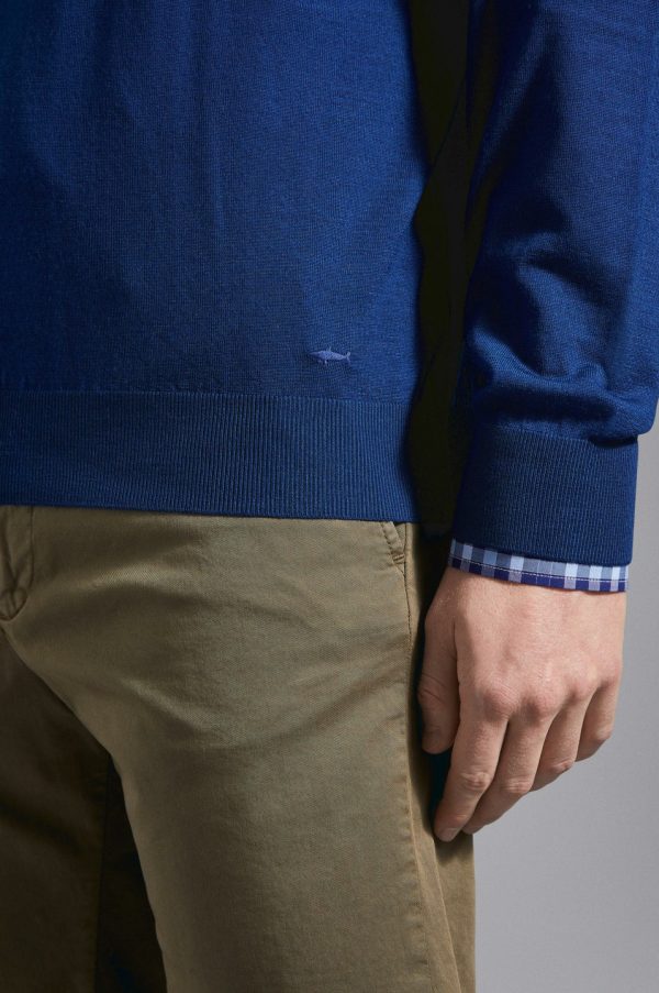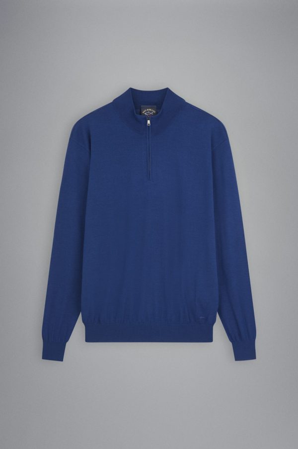 Winter Summer Merino Wool Extra-fine Half Zip Sweater Indigo Blue | Men Paul & Shark Knitwear
