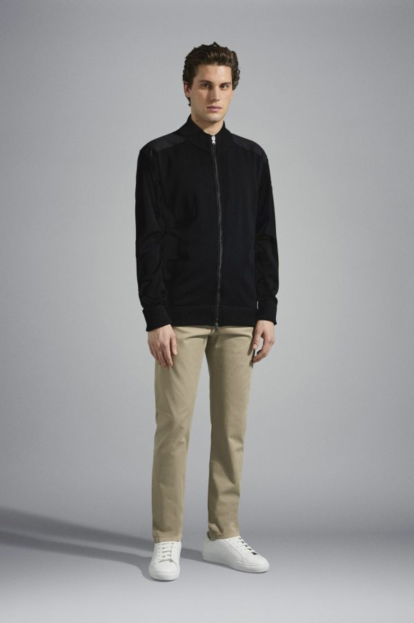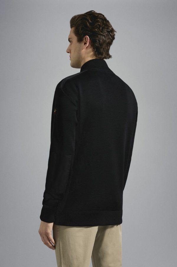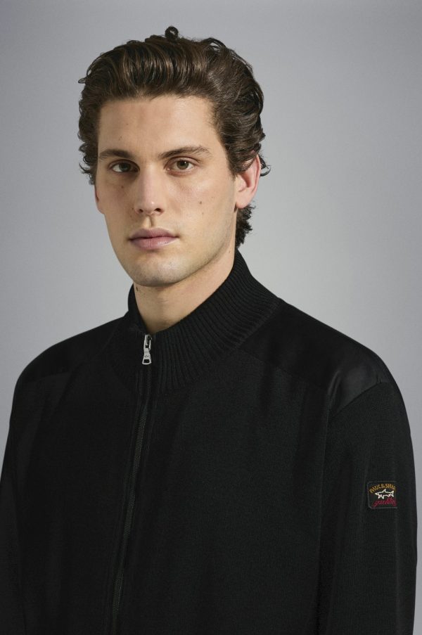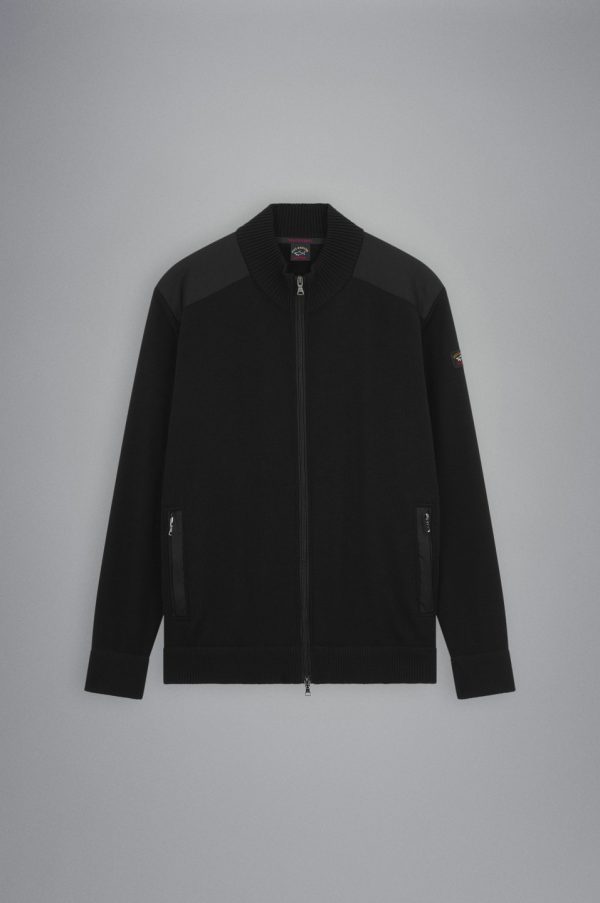 Wool Full Zip Sweater With Iconic Badge Black | Men Paul & Shark Knitwear