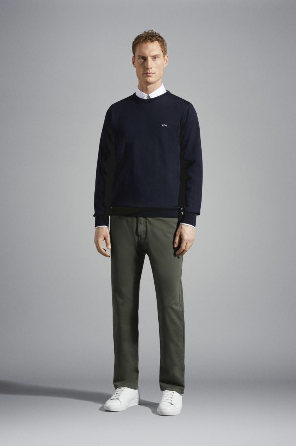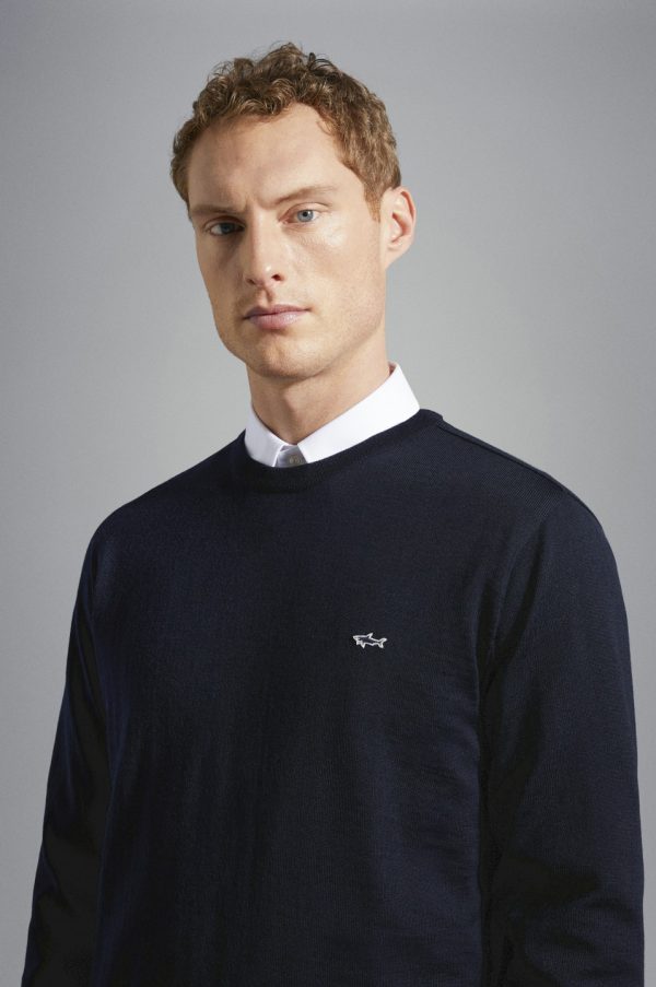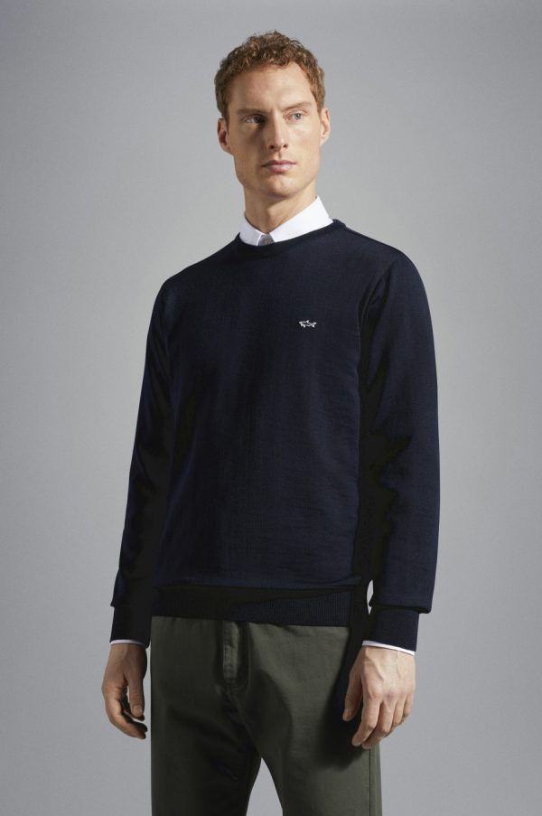 Wool Sweater With Shark Badge Blue | Men Paul & Shark Knitwear