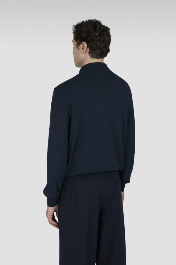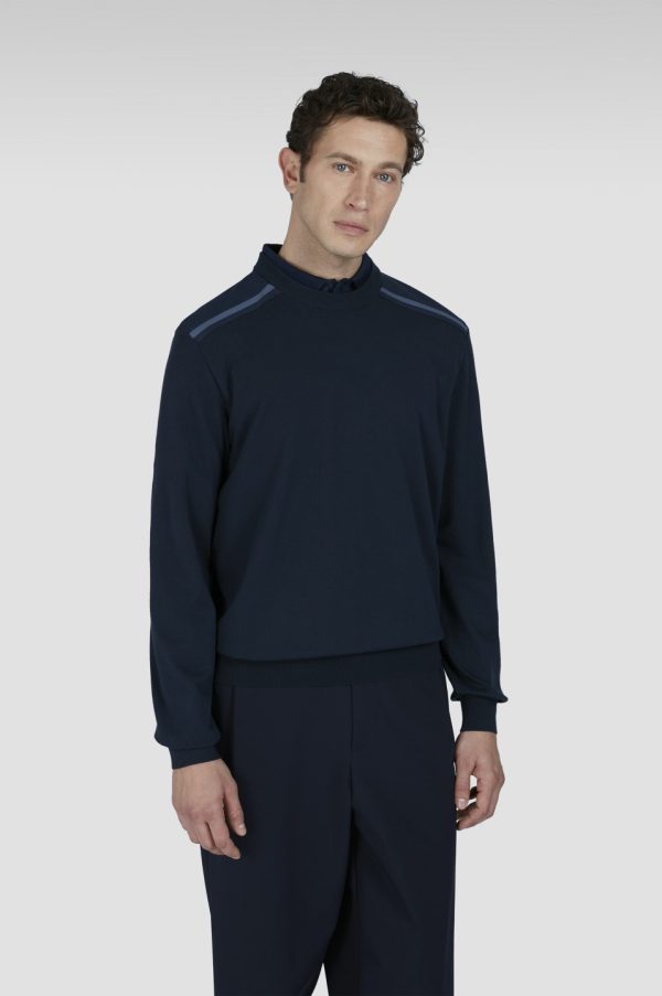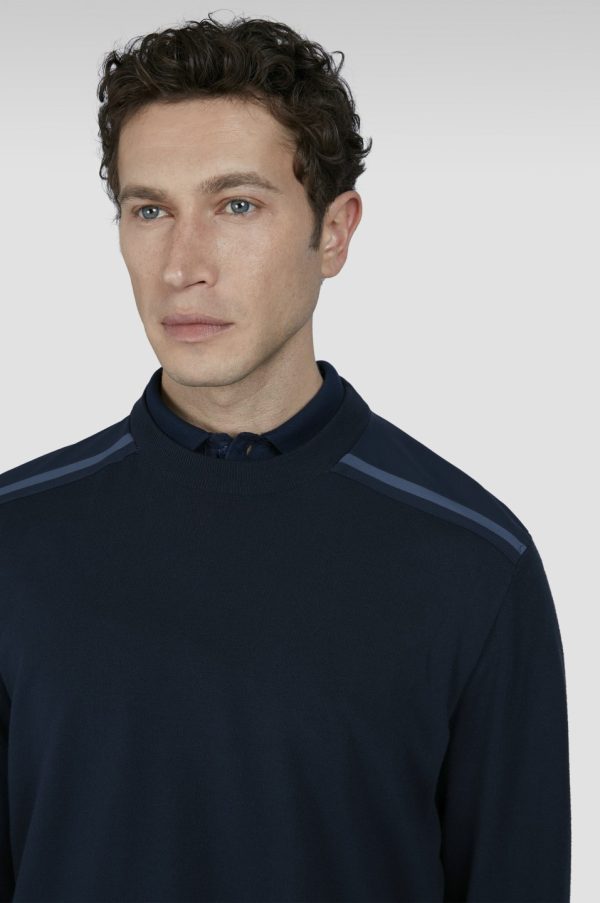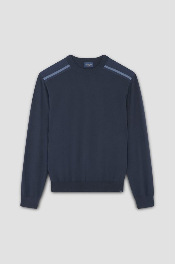 Crew Neck Sweater In Cotton And Cashmere With Leather Trims Blue | Men Paul & Shark Knitwear